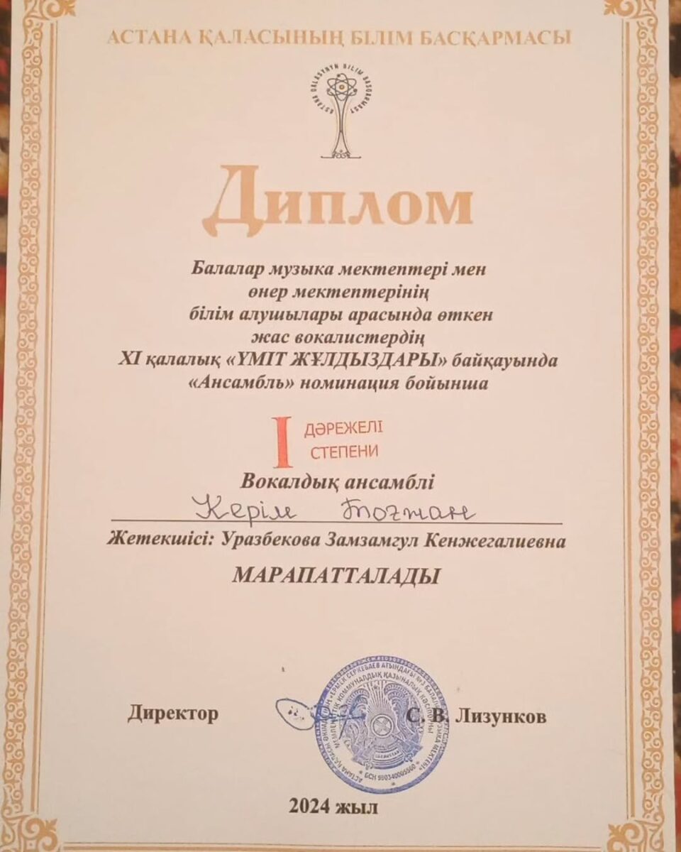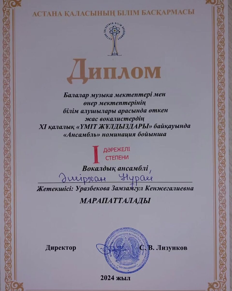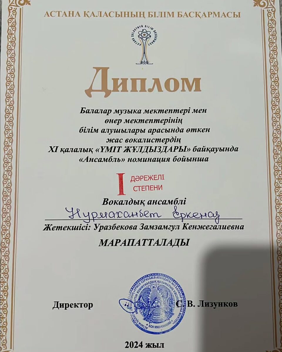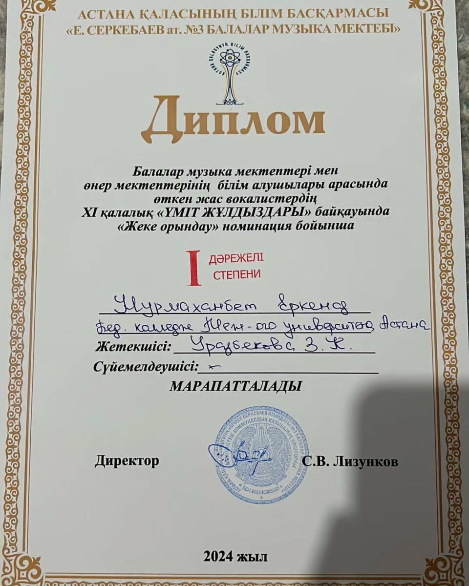 🎼🥇І орын Нурмаханбет Еркеназ