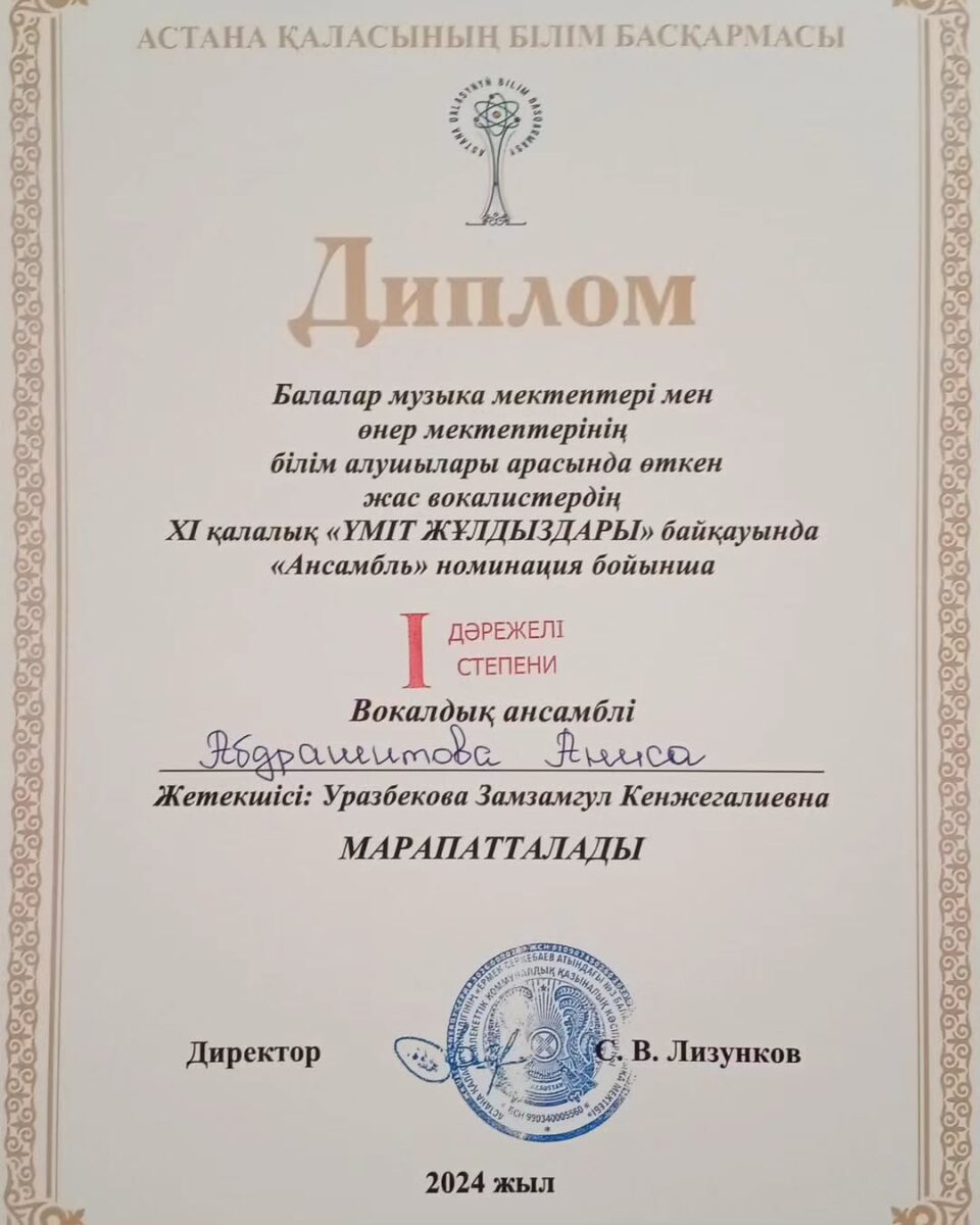 🎼🥇І орын Абдрашитова Аниса