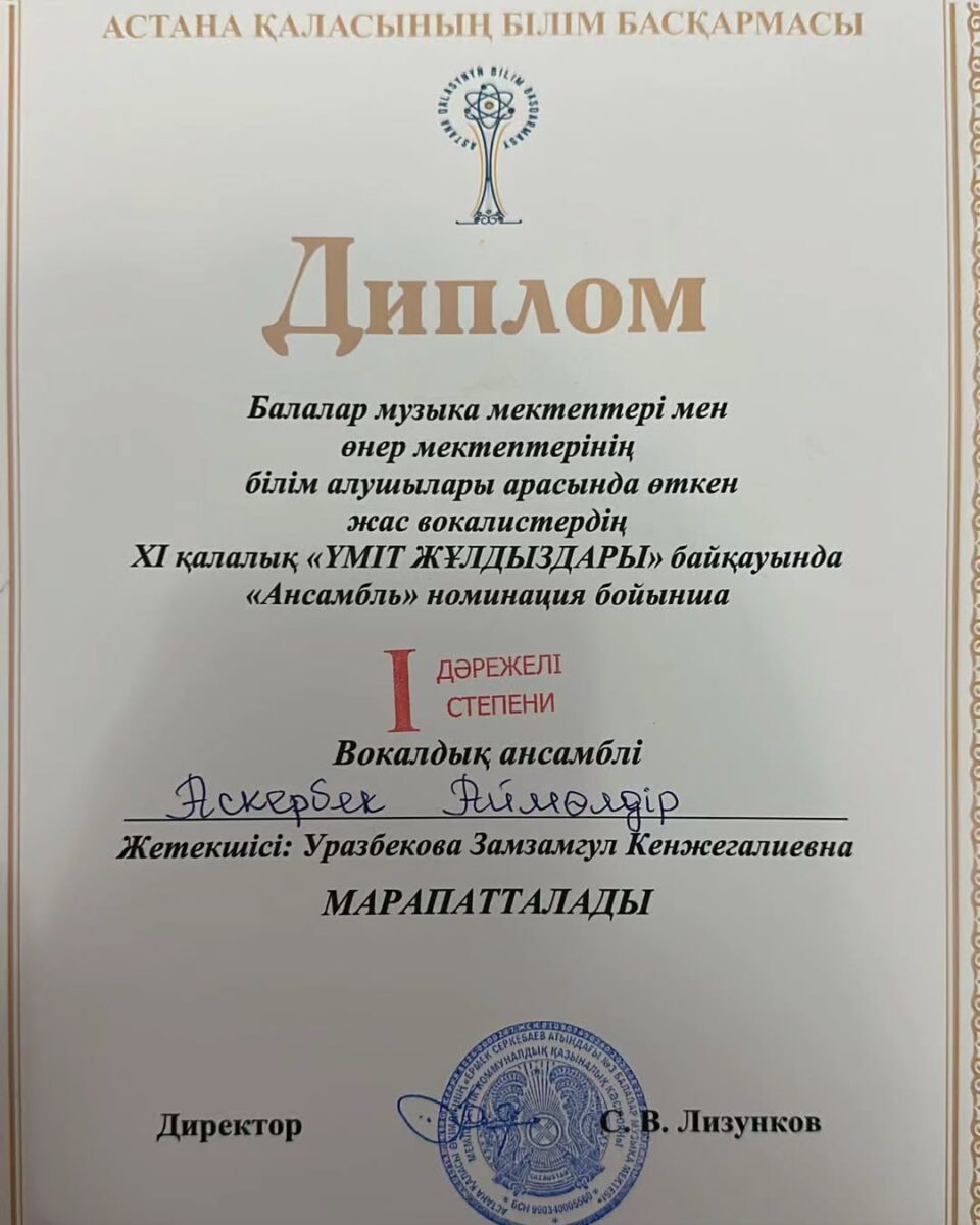 🎼🥇І орын Әскербек Аймөлдір
